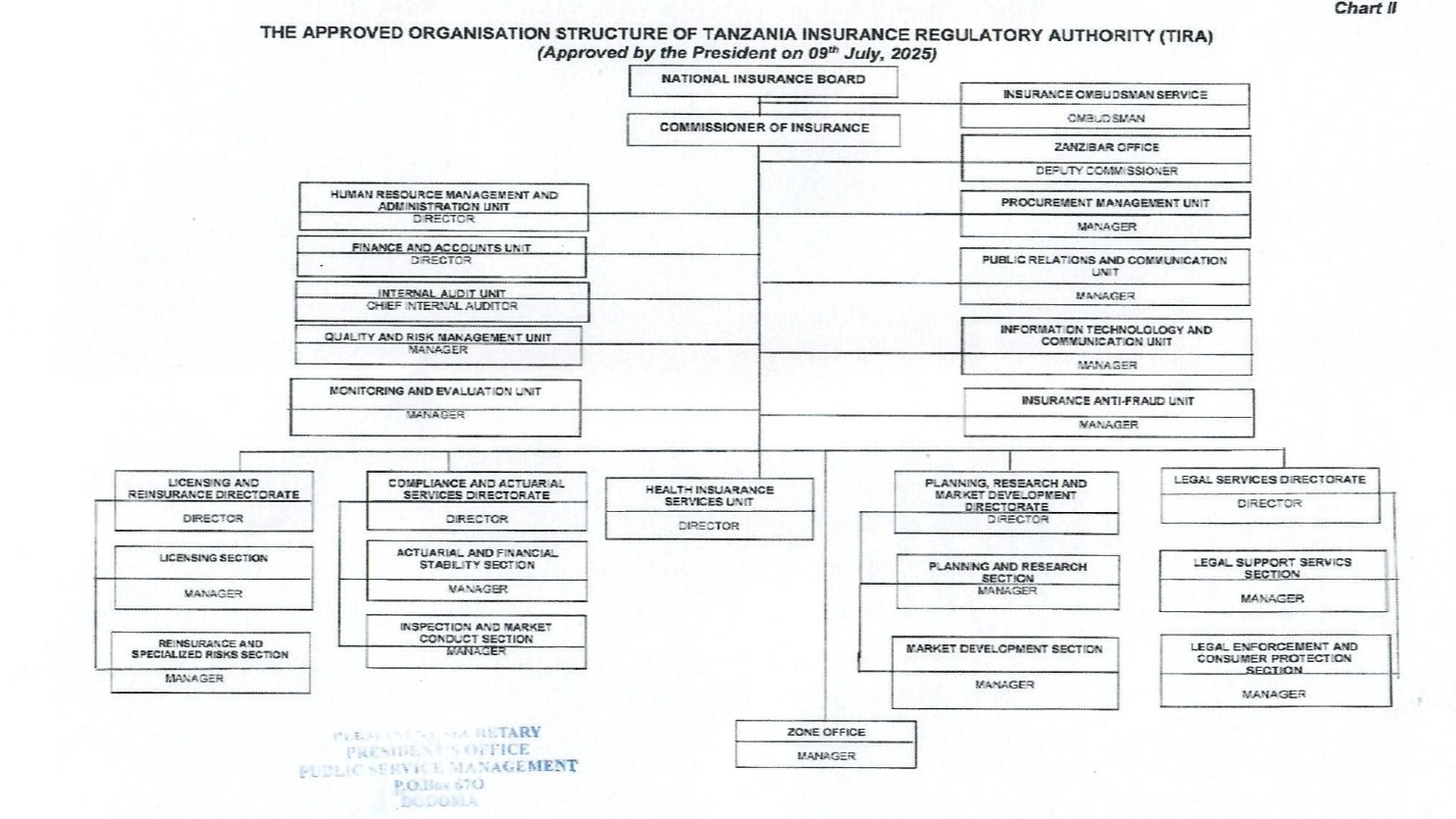 The Approved Functions and Organization Structure of Tanzania Insurance Regulatory Authority (TIRA) (Approved by President of Tanzania On 9th July, 2025)