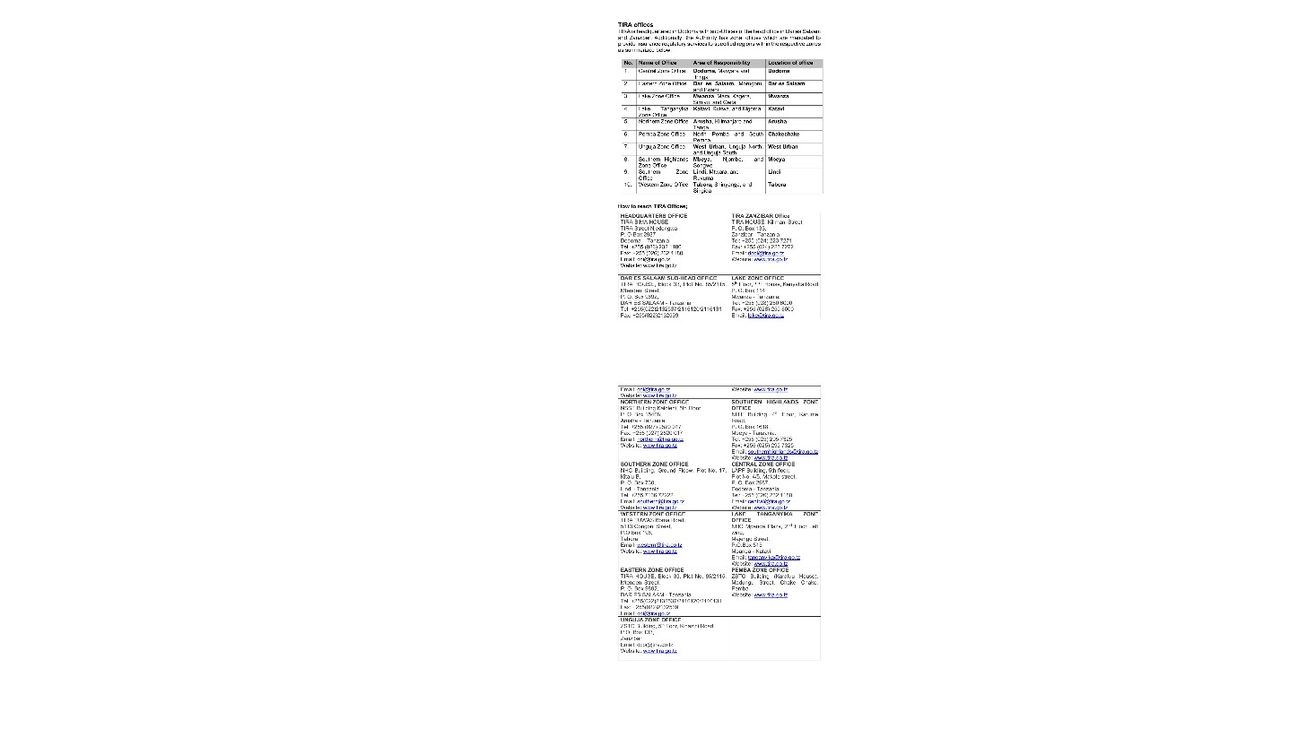 Anuani za Ofisi za TIRA